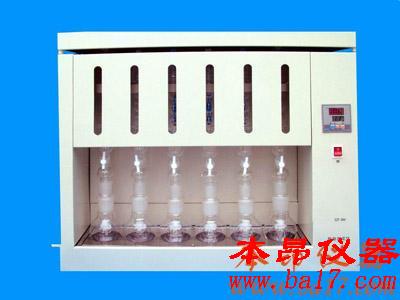SZF-06脂肪測定儀詳細介紹? ??? SZF-06型脂肪測定儀是引進脂肪測定新技術,結合我國國情研制而成。設計合理、性能穩定、精確度高、操作省力、省時,測定結果符合國家(GB5512-85)標準,各項指標及性能都達進口同類產品的要求。該儀器是食品、油脂、飼料等行業測定脂肪的理想設備。 ??? SZF-06型脂肪測定儀根據索氏抽提原理、用重量測定方法來測定脂肪含量。即在有機溶劑下溶解脂肪,用抽提法使脂肪從溶劑中分離出來,然后烘干,稱量、計算出脂肪含量。 ??? SZF-06型脂肪測定儀主要有加熱抽提,溶劑回收和冷卻三大部分組成。操作時可以根據試劑沸點和環境溫度不同而調節加熱溫度,試樣在抽提過程反復浸泡及抽提,從而達到快速測定目的。 ? SZF-06脂肪測定儀技術參數? ??? 1、測定范圍:含油量在0.5%-60%范圍內的糧食、飼料、油料及各種脂肪制品。 ??? 2、測定樣品:6個; ??? 3、電源電壓:220V+10V 頻率50Hz; ??? 4、電加熱功率:300W; ??? 5、控溫范圍:室溫+5℃-100℃ ??? 6、外型尺寸:570×330×655; ??? 7、重量:23kg。 ?