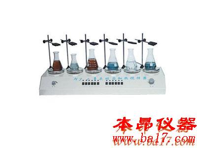 HJ-6多頭磁力加熱攪拌器采用永磁直流電機,具有無噪聲、抗振動、力矩大,攪拌效果顯著等優點,是實驗室工作人員對各種液體進行勻和和攪拌的必備儀器,也是配套各類分析儀器的常規產品