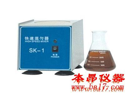 SK-1快速混勻器主要依靠裝液容器與旋轉盤的平穩接觸,使容器內的溶液快速混勻,混勻速度由人為施加的壓力大小調節。