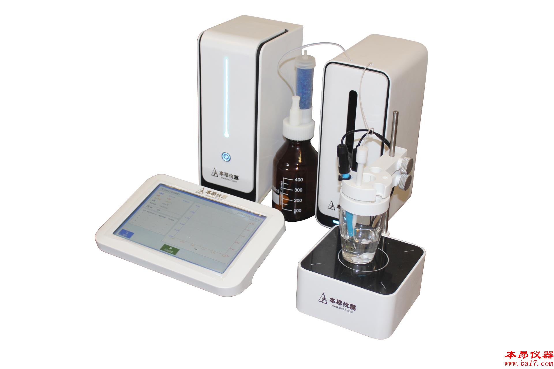 上海本昂科學(xué)儀器有限公司生產(chǎn)的APT-10智能電位滴定儀(APT-10 Intelligence potentiometric titrator)可用于水相/非水相酸堿滴定、氧化還原滴定、沉淀滴定(銀量法滴定)、絡(luò)合滴定和酸值的測定,標(biāo)配復(fù)合電極,可用于水相或化學(xué)品的酸度和堿度測定,牛奶、果汁、油脂和酒等食品的酸值檢測,并能測量pH值和離子濃度;標(biāo)配PH玻璃電極可用于非水相和強(qiáng)腐蝕性樣品的酸度和堿度測定,并能測量pH值和離子濃度;標(biāo)配銀電極和銀-氯化銀參比電極,可用于沉淀滴定,如氯離子含量、銀含量、硫化物和硫醇含量等檢測;標(biāo)配鉑電極,可用于氧化還原滴定,如二氧化硫含量、還原糖含量、過氧化值和維生素C含量等檢測。