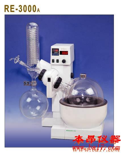 RE-3000A旋轉蒸發器球磨口冷凝管 轉速數顯 電子無級調速20-200轉/分 功率:40W蹺板式按鍵 快速自動升降 0-150mm 特氟隆復合鍋 全封閉加熱器 功率1.4Kw全透明保溫、節能、防爆、防污罩 溫度自動控制 數字顯示水溫。
