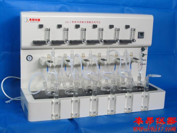 LSC-1智能水質(zhì)硫化物酸化吹氣儀是上海本昂科學(xué)儀器有限公司根據(jù)中華人民共和國標(biāo)準(zhǔn)GB/T16489-1996《水質(zhì)硫化物的測定--亞甲基藍(lán)分光光度法》和《HJ/T 60-2000 水質(zhì)硫化物的測定 碘量法》量身定做的一款專門用于檢測水中硫化物的前處理儀器。該儀器采用垂直加酸、氮?dú)獯得摗⑺峄盏纫惑w化設(shè)計(jì),一次可處理1-6組樣品。每個(gè)單元采用獨(dú)立的轉(zhuǎn)子流量計(jì)控制氮?dú)饬魉?;PID加熱控溫程序,自動(dòng)升溫至設(shè)定溫度,缺水自動(dòng)報(bào)警,自動(dòng)補(bǔ)水;外置式平板電腦遙控操作等程序?qū)崿F(xiàn)了對(duì)水質(zhì)硫化物測定的智能預(yù)處理。完全滿足樣品前處理的需要。適用于環(huán)保、科研、水文等單位的土壤、海水、湖泊、地面水、地下水、生活污水和工業(yè)廢水中硫化物的測定。LSC-1智能水質(zhì)硫化物酸化吹氣儀具有便捷控制、操作簡便、快捷、嚴(yán)格按照國標(biāo)執(zhí)行等特點(diǎn)。