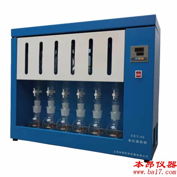 ???????SXT-06型索氏提取器主要由加熱提取,溶劑回收和冷卻三大部分組成。操作時可以根據試劑沸點和環境溫度不同而調節加熱溫度,試樣在抽提過程反復浸泡及抽提,從而達到快速提取目的;SXT-06型索氏提取器可自動回收溶劑,大大方便了用戶的使用,并節約了很多時間。